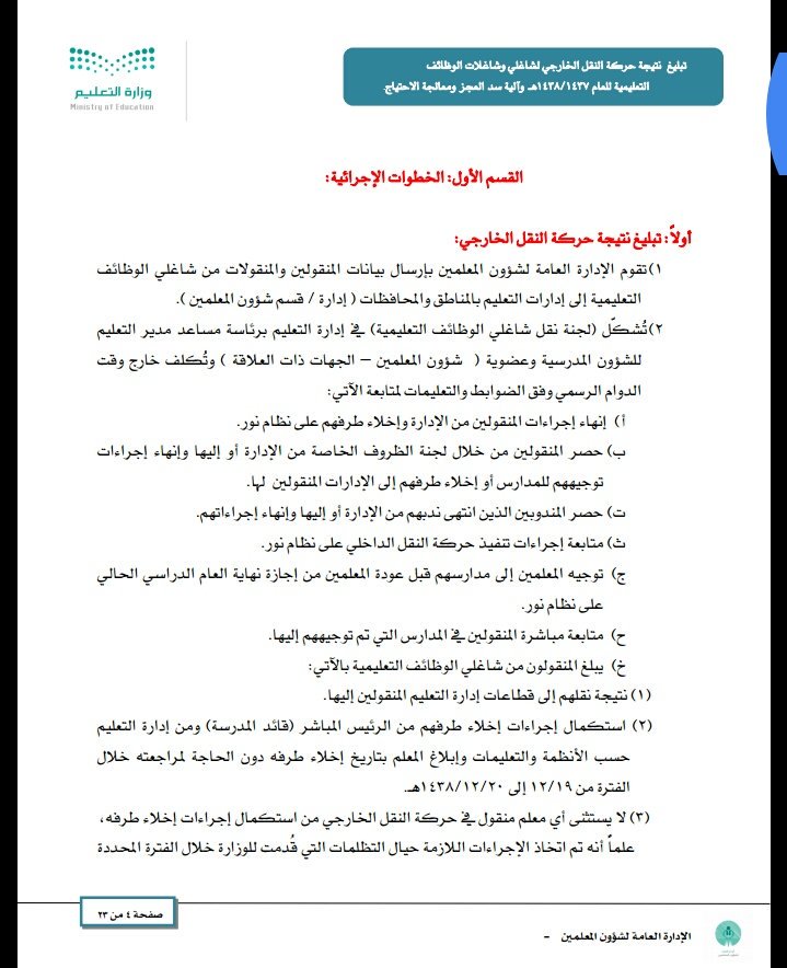 ملتقى معلمي السعودية Na Twitterze ورد تعميم تبليغ نتيجة حركة النقل الخارجي ١٤٣٧ ١٤٣٨ اخلاء الطرف الكتروني عبر نظام نور اعلان حركة النقل الداخلي قبل عودة المعلمين Https T Co 6ezcyamnlj