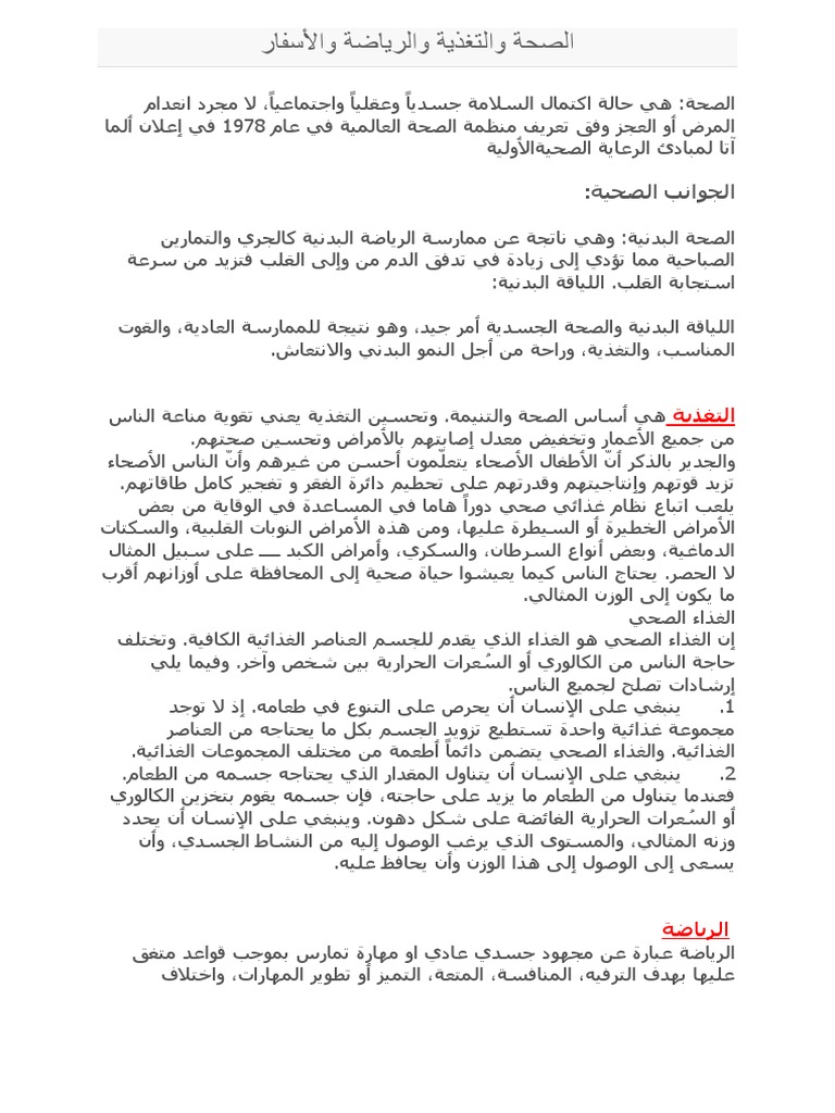 الصحة والتغذية والرياضة والأسفار